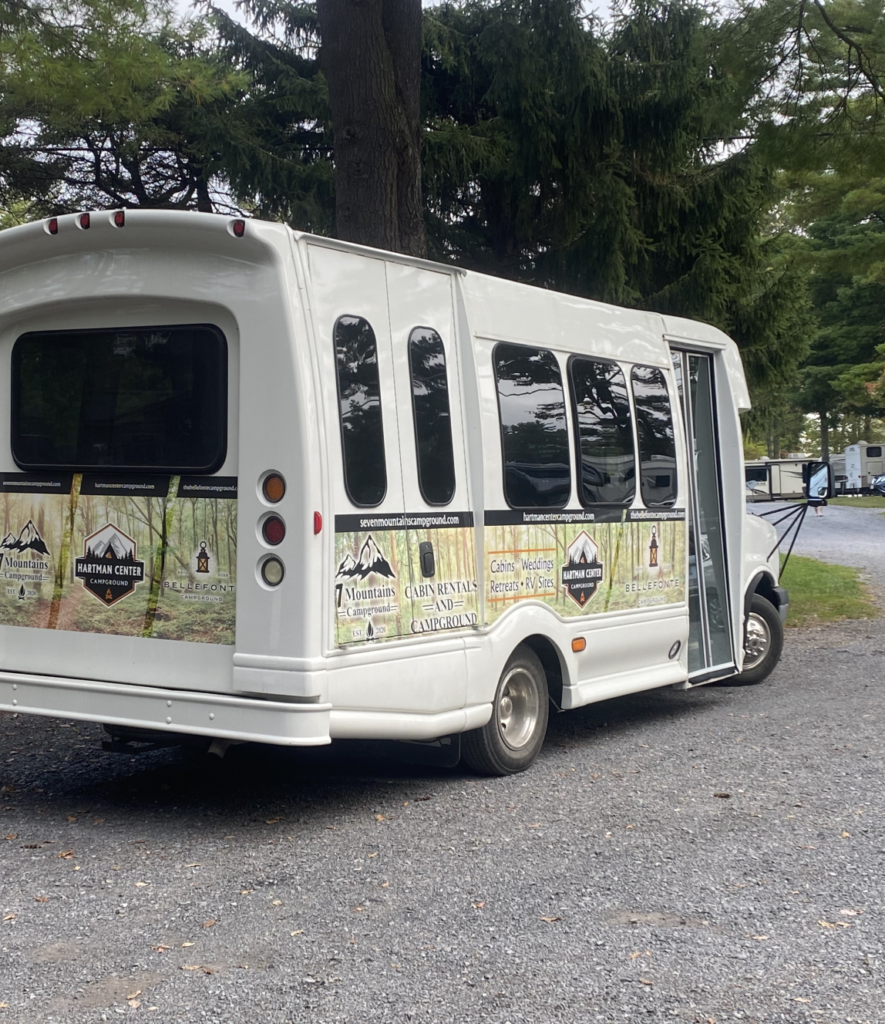 Skip the hassle and ride in style with our private shuttle service, available to campers only. With seating for up to 14 passengers, it’s perfect for Penn State games, local weddings, airport runs, and more. Be sure to reserve early– spots fill fast! Call the campground office at (814) 364-1910 to reserve your spot