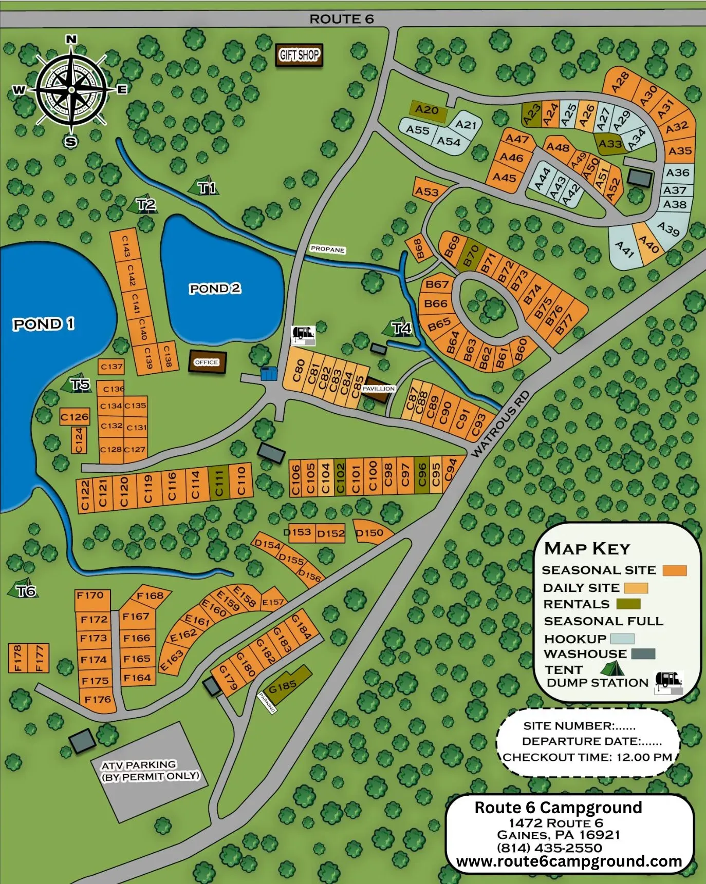 Route 6 Campground is tucked right in the heart of some of Pennsylvania’s most stunning scenery. Located along the “Highway to the Stars,” it boasts the darkest skies east of the Mississippi, providing spectacular views of the Milky Way and other celestial bodies. With two stocked fishing ponds on site, numerous ATV trails, and the PA Grand Canyon close by, it’s the perfect spot to unplug and take it all in. However you like to camp, you’ll find plenty of space, fresh air, and outdoor fun all around.